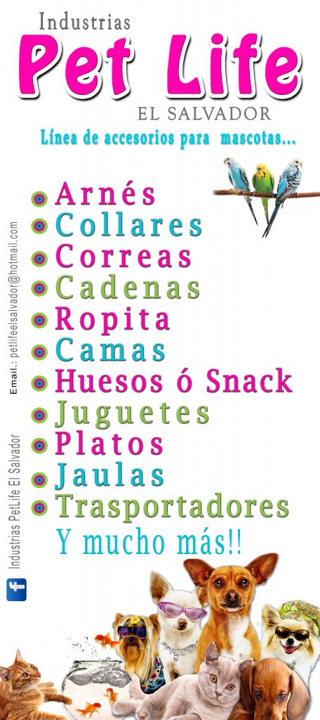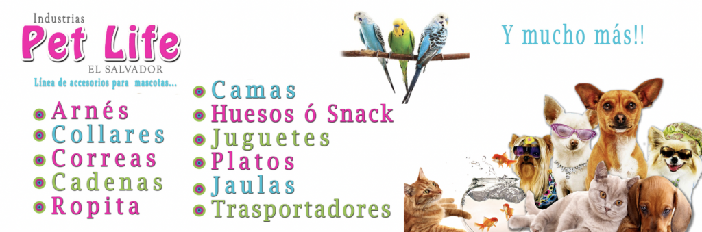 Pet Life es una empresa 100% salvadoreña, dedicada a la fabricación e importación de accesorios para mascota, entre los cuales podemos mencionar arnés, collares, correas, ropita, camas, platos, bocadillos, huesos de carnaza, juguetes, trasportadores etc.