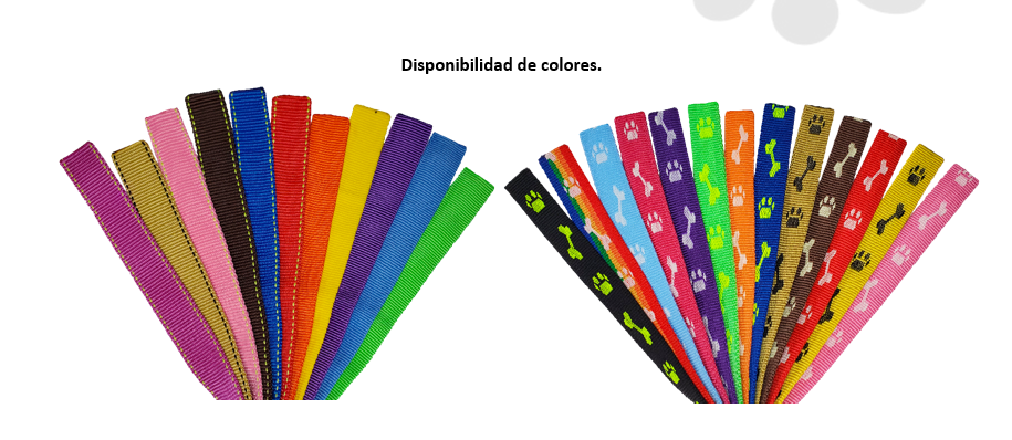 Contamos con variedad de tallas en arnés, colores lisos y con huellas.